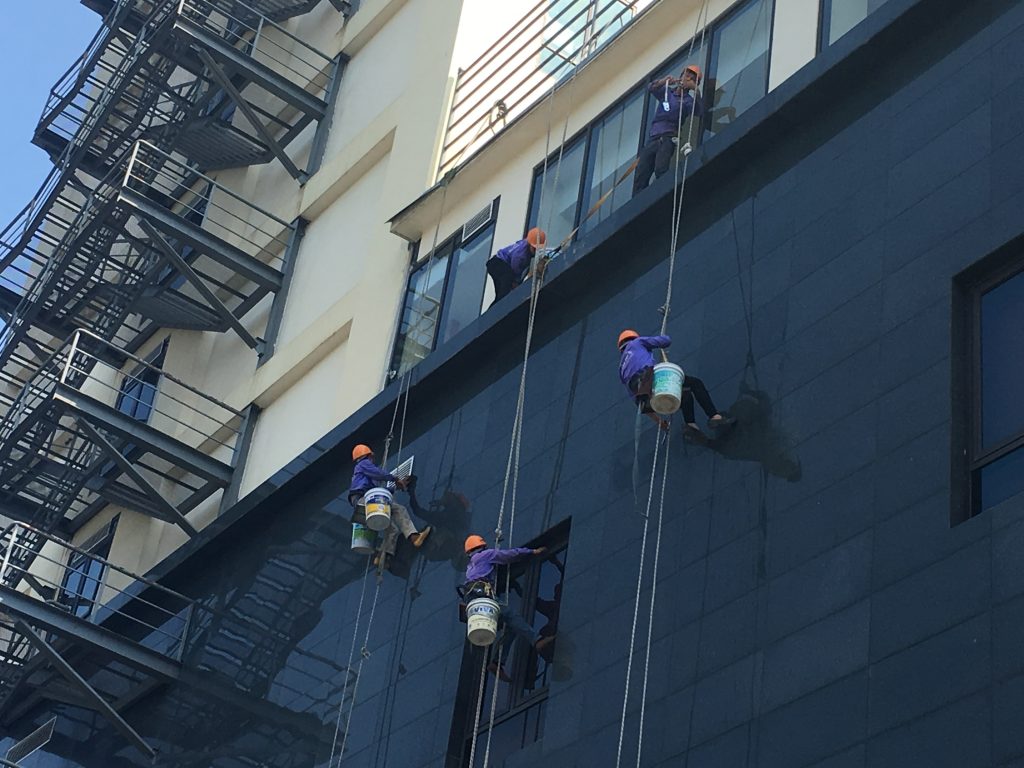 • Đội ngũ nhân viên của chúng tôi được đào tạo chú trọng đến kỷ luật, an toàn, tỉ mỉ khi làm việc trên cao, luôn tuân thủ quy tắc an toàn khi đu dây lau kính.